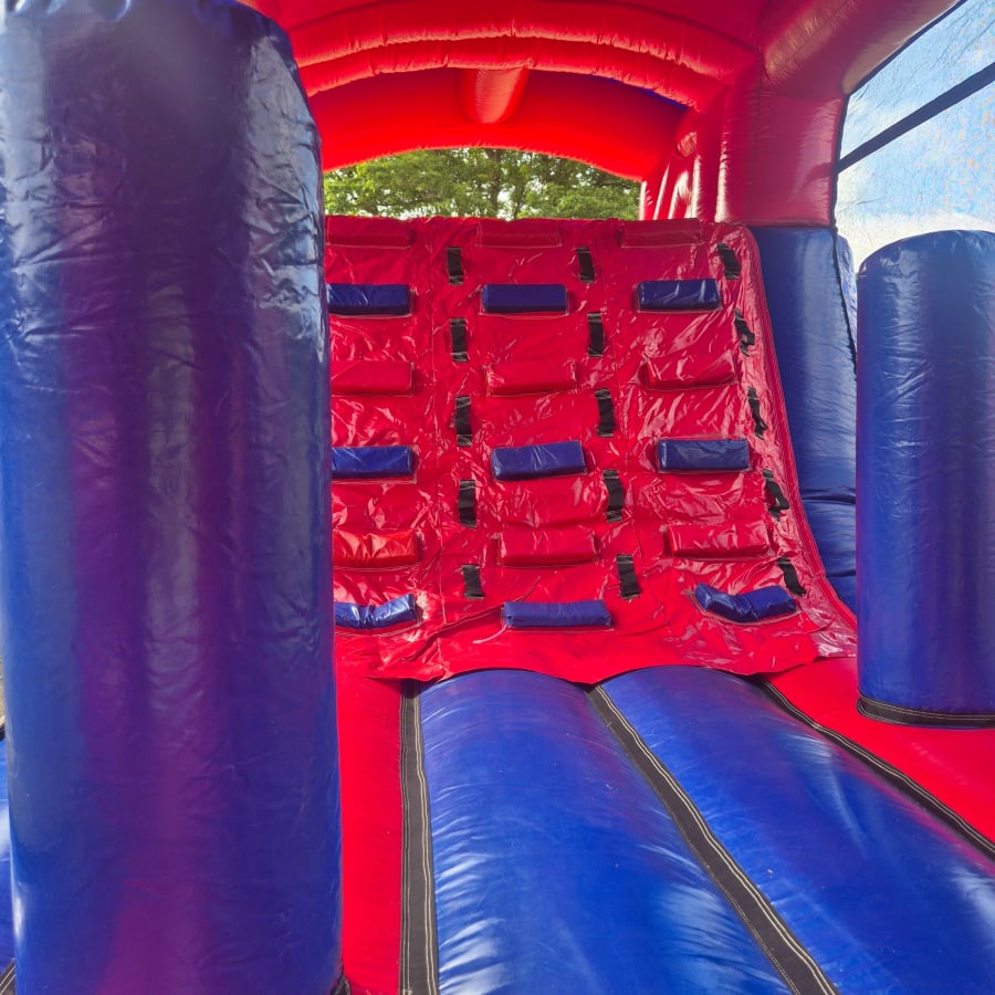 The all new inflatable obstacle course for hire measure in at 27ft in length yet is still perfect for both indoor and outdoor hire. 27ft is a brilliant length making it suitable for most domestic parties, pubs, clubs, schools, galas, scouts, cubs, guides and other community groups aiming to keep children entertained for longer periods of time than the standard bouncy castle for example.