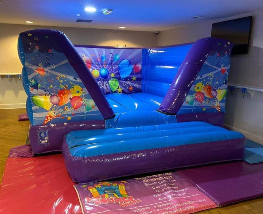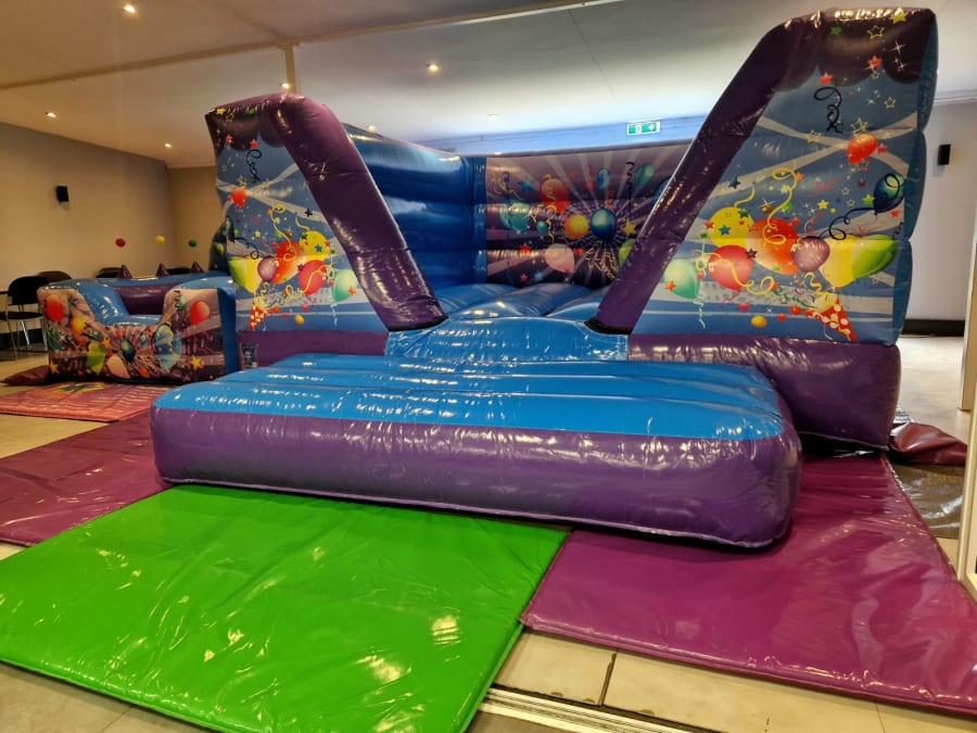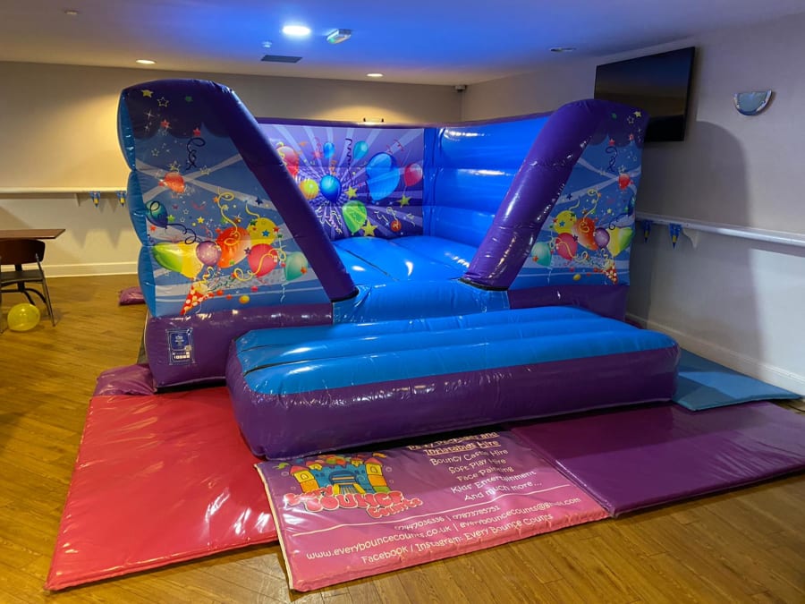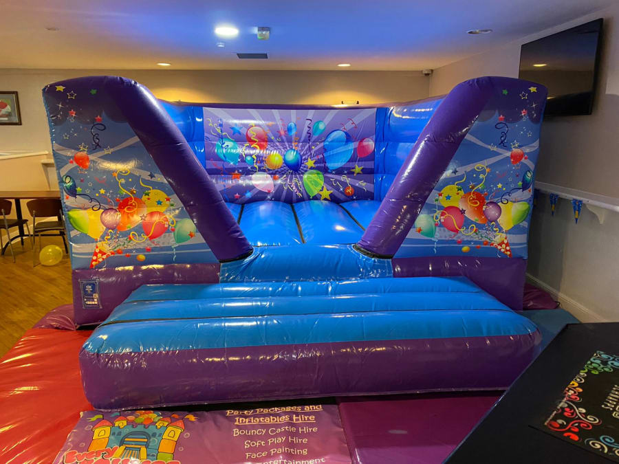 This castle is our newest addition to the inflatable family. It features a balloon design that will work perfectly with every party theme. Some halls may have low ceilings or maybe beams, dangling lights, which will restrict the height of the castle that you can hire and use inside. To make sure we have a castle for every hall and space, we bring you this low castle at just under 7ft tall. A 9ft height clearance will still be needed.