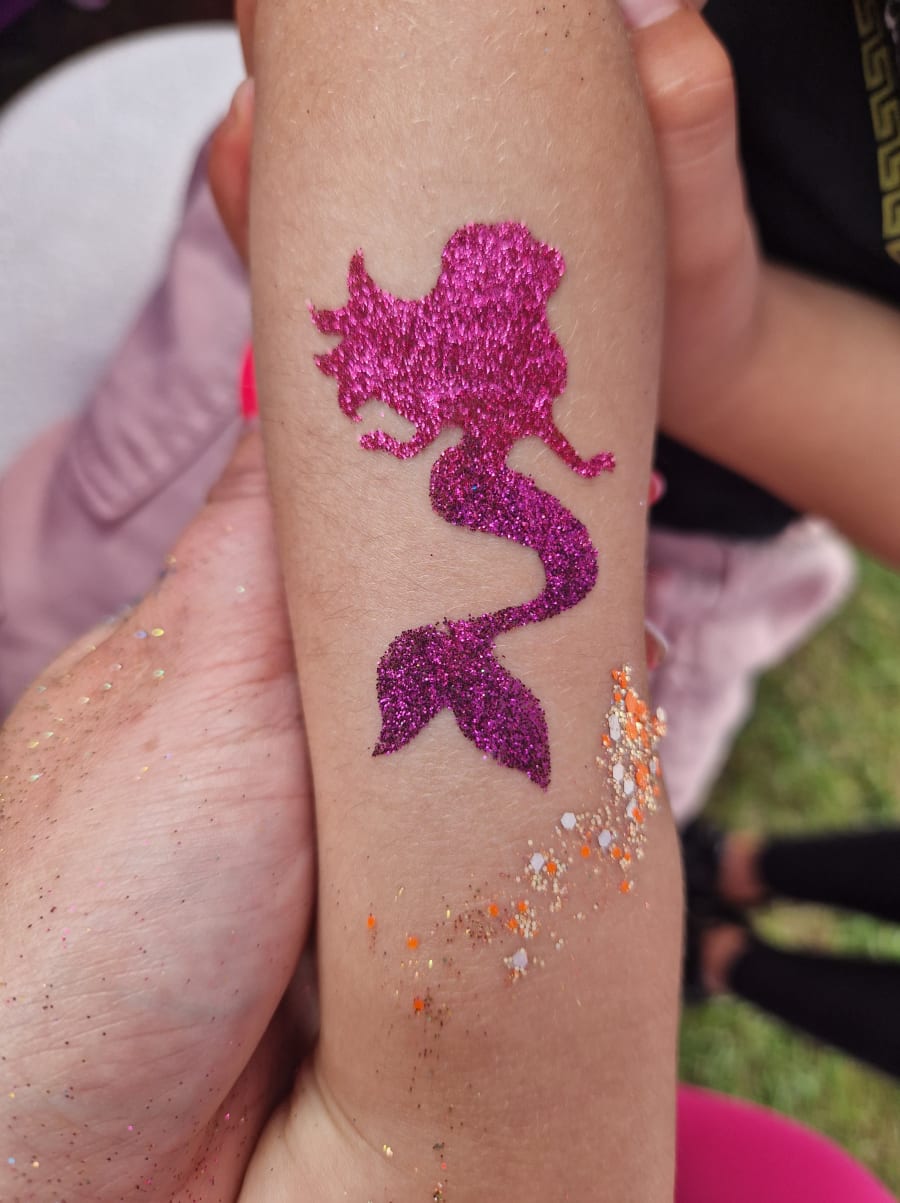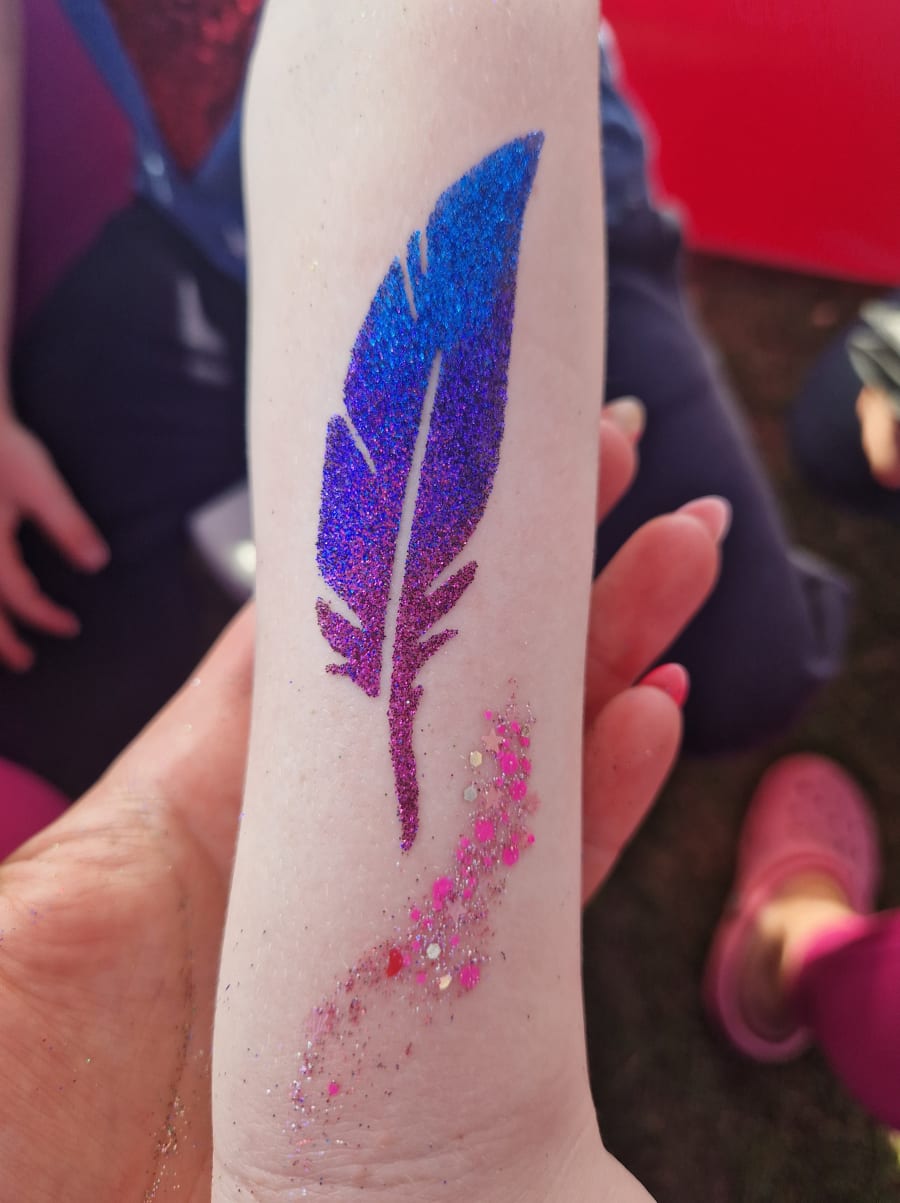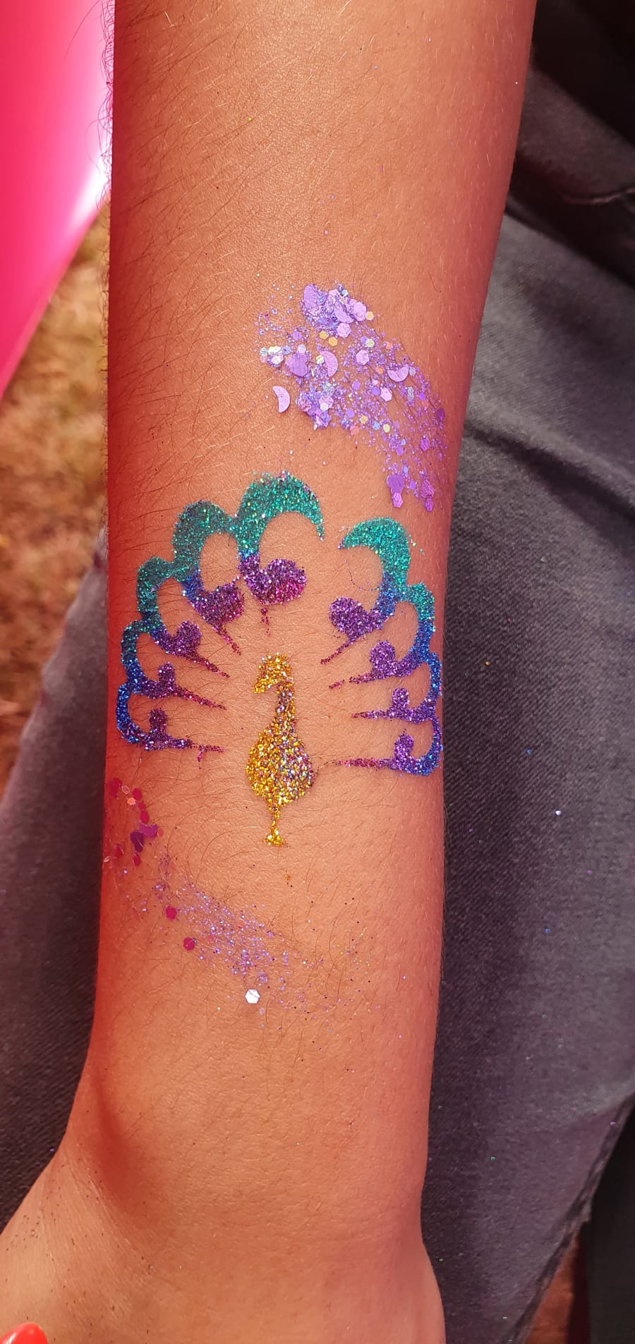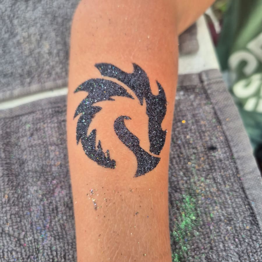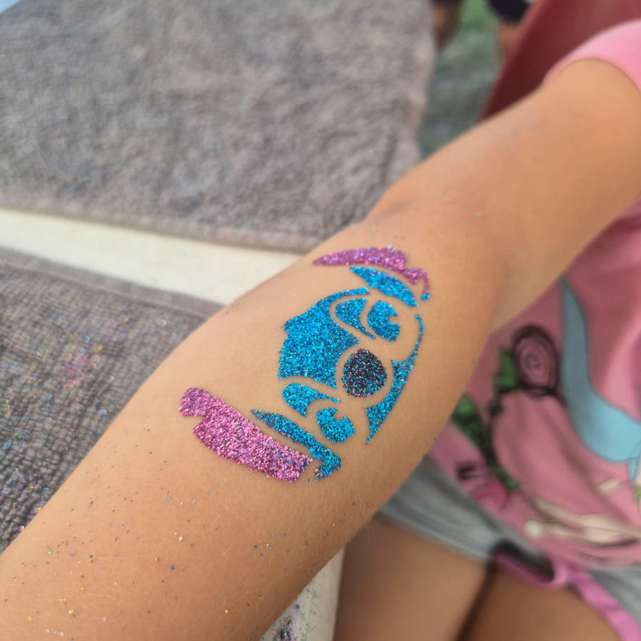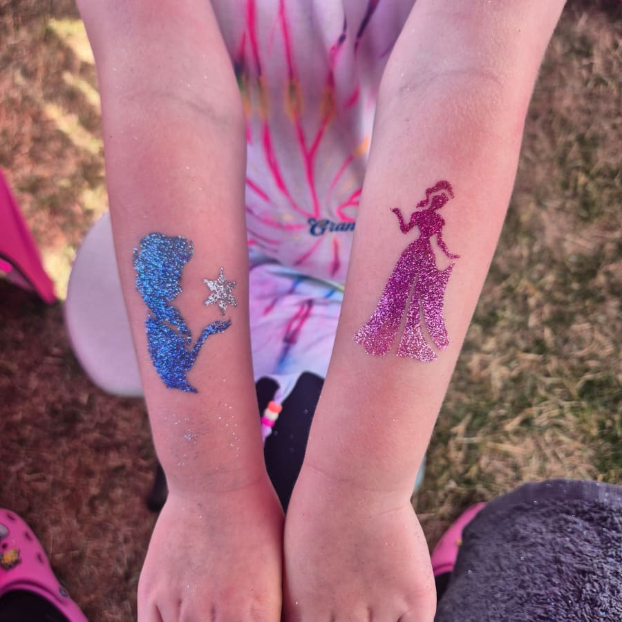 Glitter tattoos are very popular at children's parties and events, and are bound to provide great fun for the children with their awesome sparkly designs! We have the best body artist around, and so you and even the pickiest of children, will be pleasantly surprised with the artists' incredible abilities to turn a simple design into a colourful masterpiece!