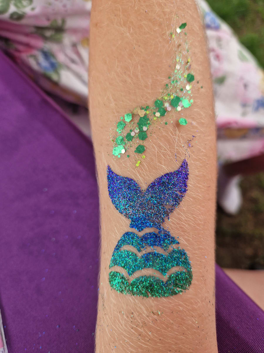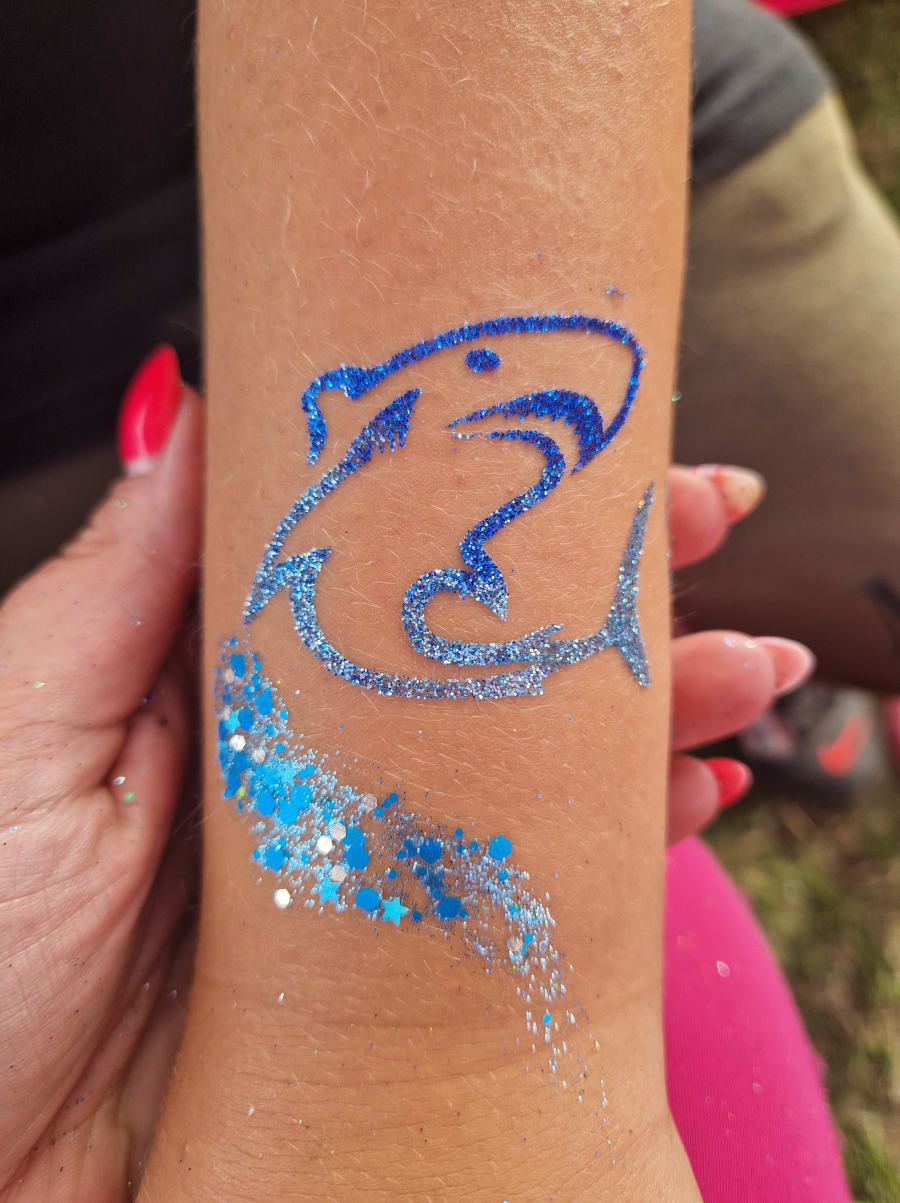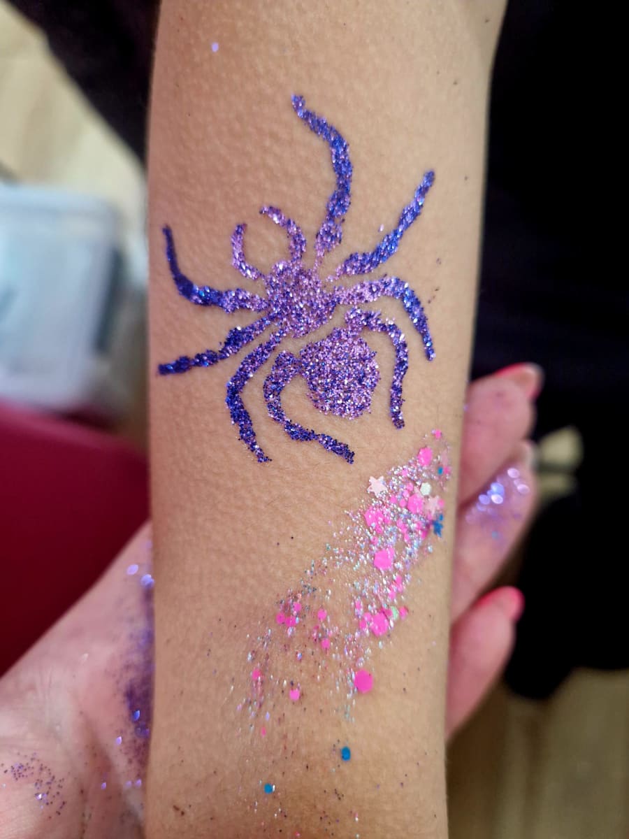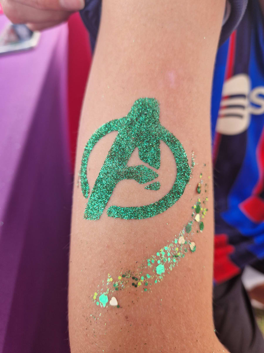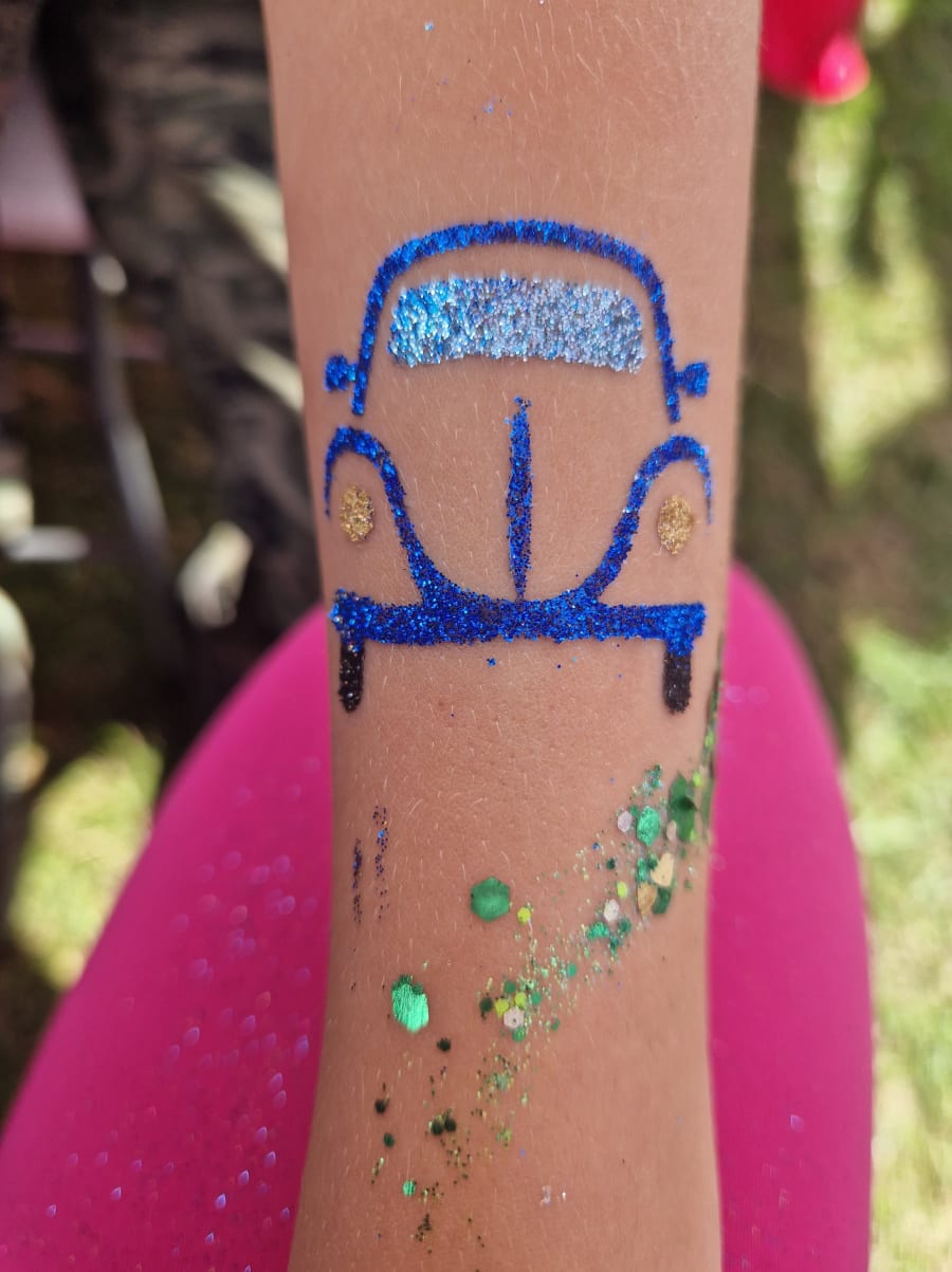 Glitter tattoos are very popular at children's parties and events, and are bound to provide great fun for the children with their awesome sparkly designs! We have the best body artist around, and so you and even the pickiest of children, will be pleasantly surprised with the artists' incredible abilities to turn a simple design into a colourful masterpiece!