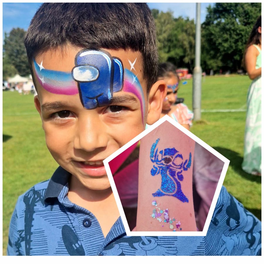 There will be a choice of around 12 designs for face painting and 200+ designs for glitter tattoos, so everyone will find something for themselves.