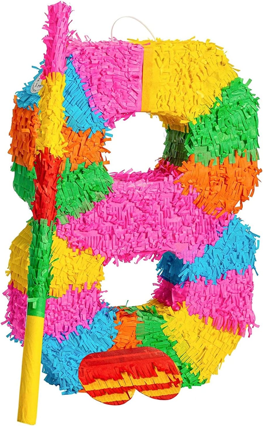 Number 8 Pinata Set with Stick & Blindfold | 35 x 7.5 x 50cm - Green, Red, Yellow.