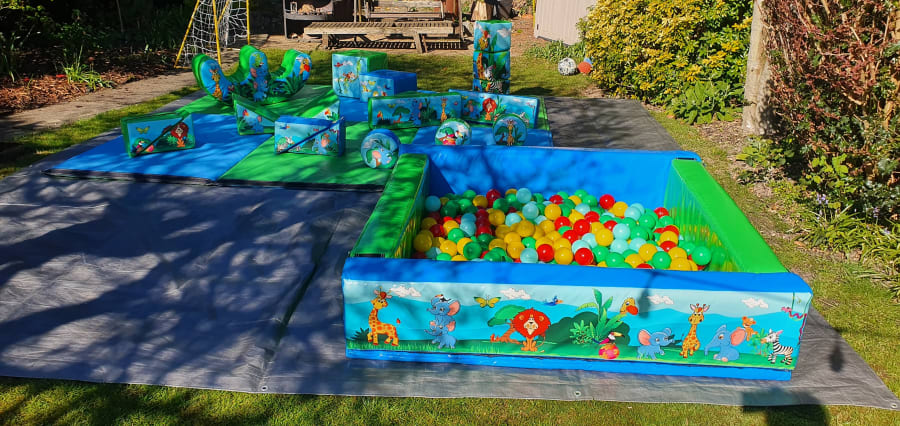 This soft play especially works well with our green jungle bouncy castle.