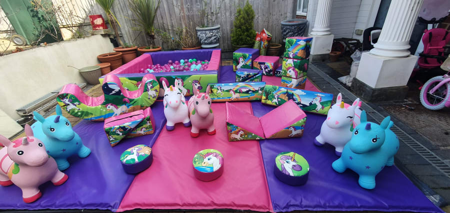 Our unicorn soft play comes in a range of options, whether it's a 13, 19 pcs to even 19pcs with unicorn hoppers, to suit any amounts of children.