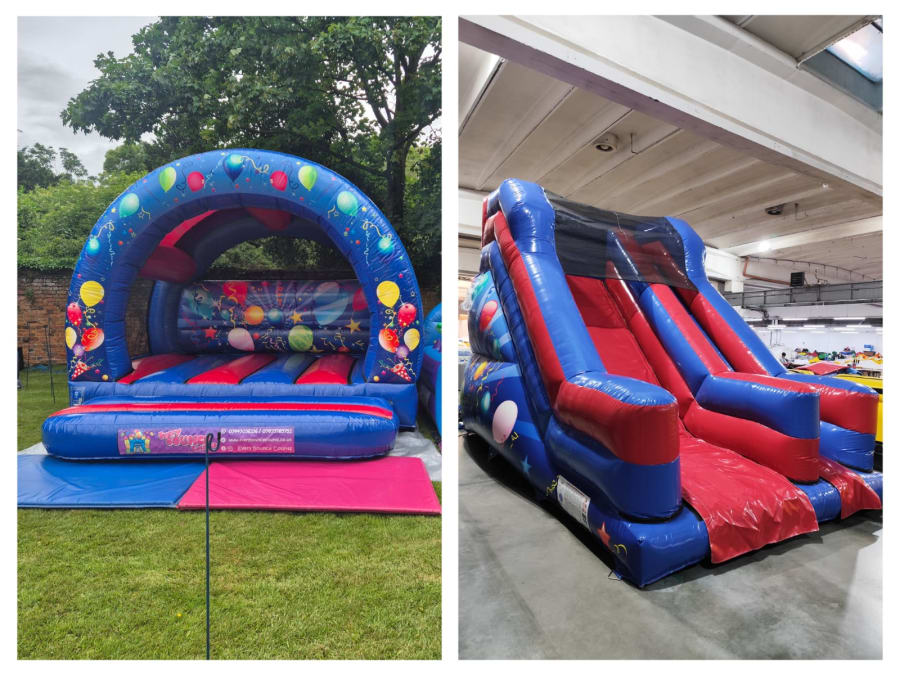 Create the ultimate party setup with our Bouncy Castle and Slide Hire Package, combining a 12ft x 12ft curved bouncy castle with a 10ft platform inflatable slide.